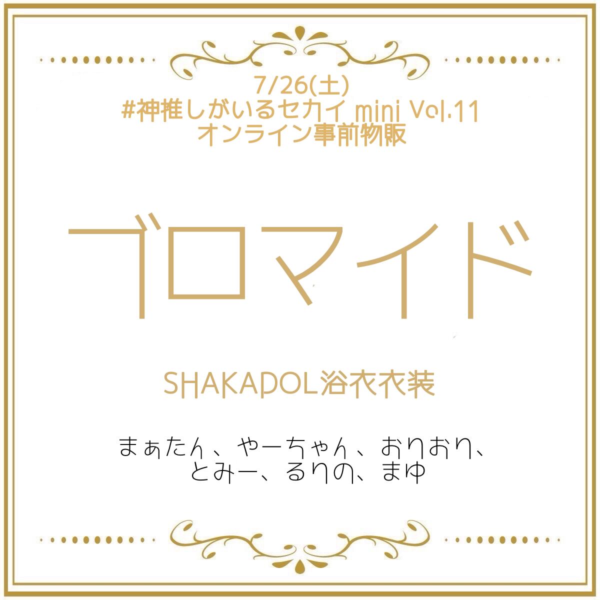 7/26(土)に出演を予定している「#神推しがいるセカイ mini Vol.11」で着用する、SHAKADOL浴衣衣装のブロマイド3点セットです。事前予約限定販売のためイベント前日までの受付となります。