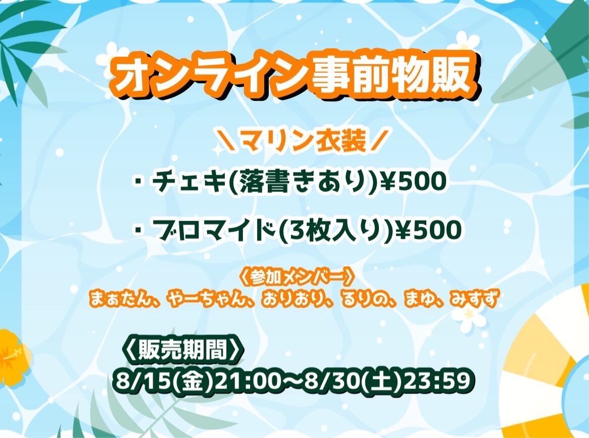 8/31(日)に出演を予定している「#神推しがいるセカイ Vol.20」で着用する、マリン衣装のソロデコチェキです。事前予約限定販売のためイベント前日までの受付となります。