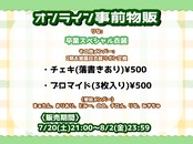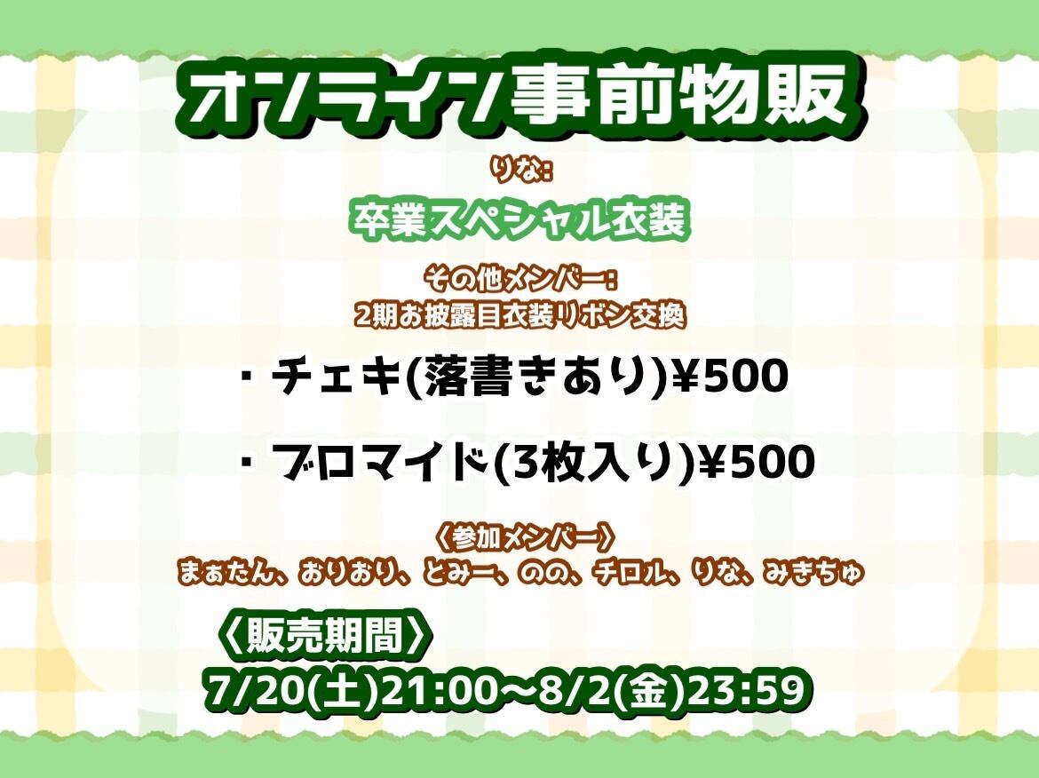 8/3(土)に出演を予定している「Special Girls Revolution vol.170」で着用する衣装(りな:卒業スペシャル衣装、その他メンバー:2期生お披露目ステージ衣装リボン交換)のソロデコチェキです。事前予約限定販売のためイベント前日までの受付となります。