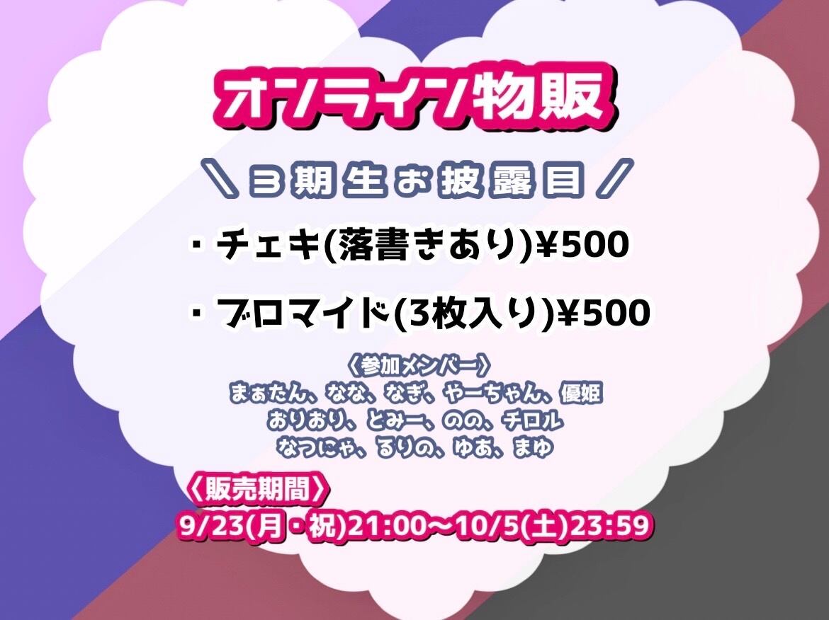 10/6(日)に出演を予定している「Dream Future Advance vol.51」で着用する衣装(1,2期:2期お披露目衣装、3期:昨年度2期宣材衣装)のブロマイド3点セット(ヨリ・ヒキ・チュウ)です。事前予約限定販売のためイベント前日までの受付となります。